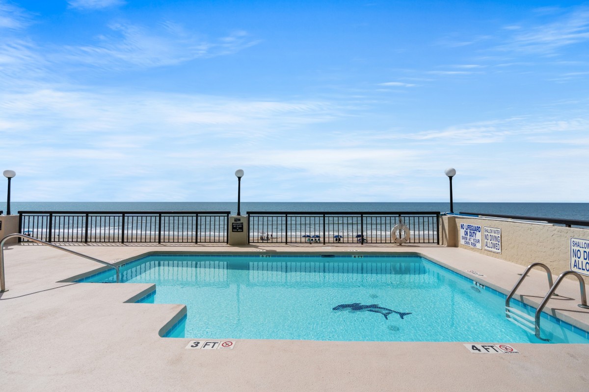 On site at this oceanfront North Myrtle Beach high rise is a swimming pool, grill and picnic area for family cookouts and a kiddie pool. The beach access is steps away from the pool deck so you can be on the sandy beach in no time. Banana boat rides, parasailing, delicious seafood restaurants, live entertainment theatres and Myrtle Beach golf courses are nearby this condominium in North Myrtle Beach, South Carolina!