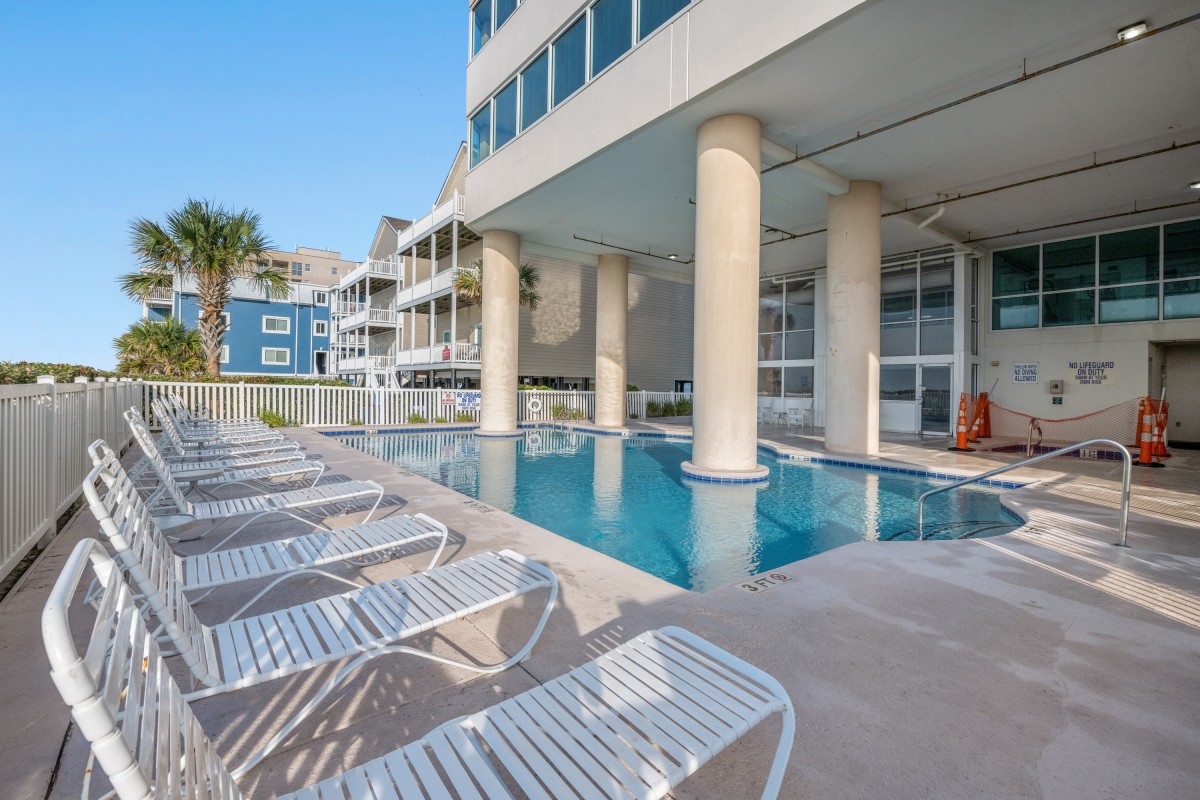 Step onto the Laguna Keyes 908 balcony and take in the oceanfront view. In the near distance, you will spy offshore crashing waves, a fishing pier, and recreational boats enjoying sunny days on the ocean. What you cannot see from your balcony, but what is just below your vacation rental, is a lazy river, and adjacent to that is a kiddie pool. What you can spy from your condo rental is the sparkling swimming pool on the oceanfront sundeck. There are two pool decks at Laguna Keyes Resort; one faces the street on the 6th floor, and the other is on the oceanfront. This resort also has an indoor swimming pool.