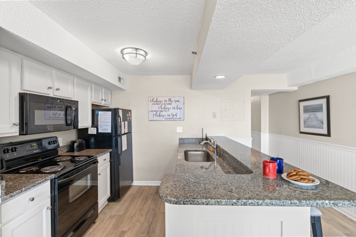 The ocean view was nice, king bed was very comfortable, and the kitchen was equipped well for cooking. This complex is very close to the IGA grocery store and several restaurants within walking distance. Also, in an area with less traffic than other parts of Myrtle Beach.
