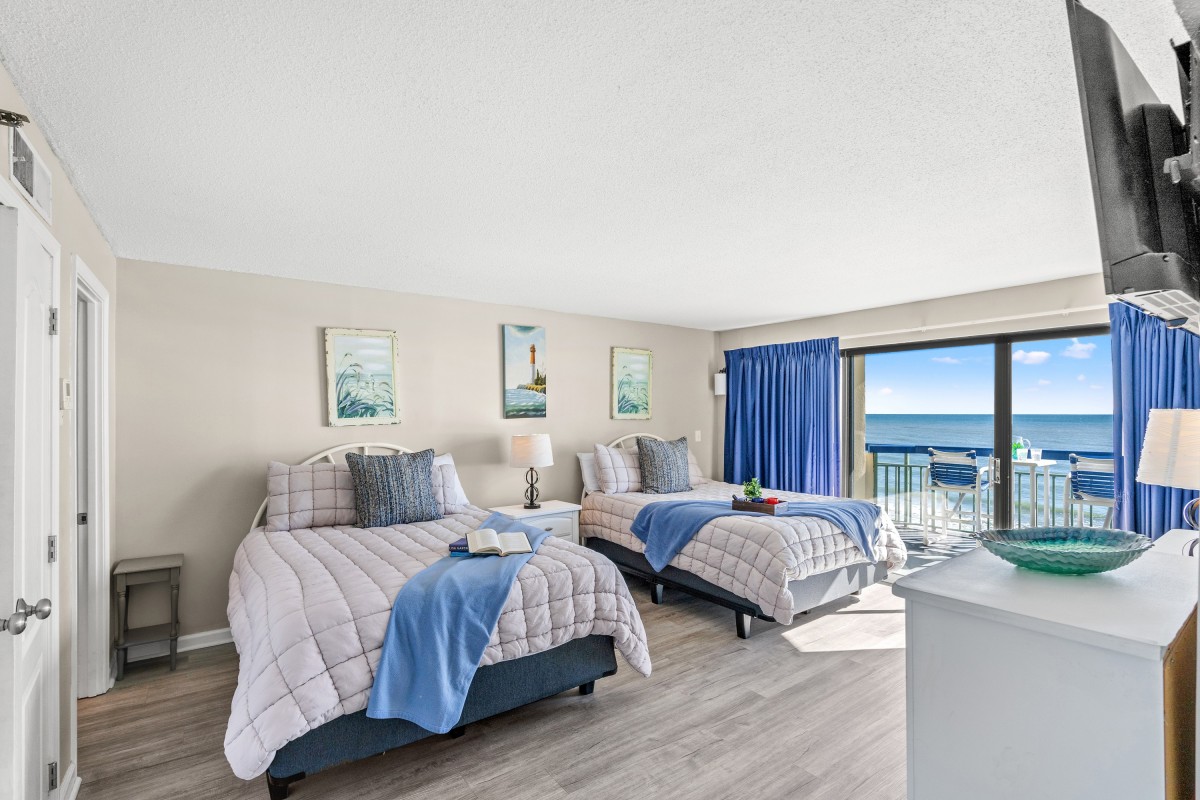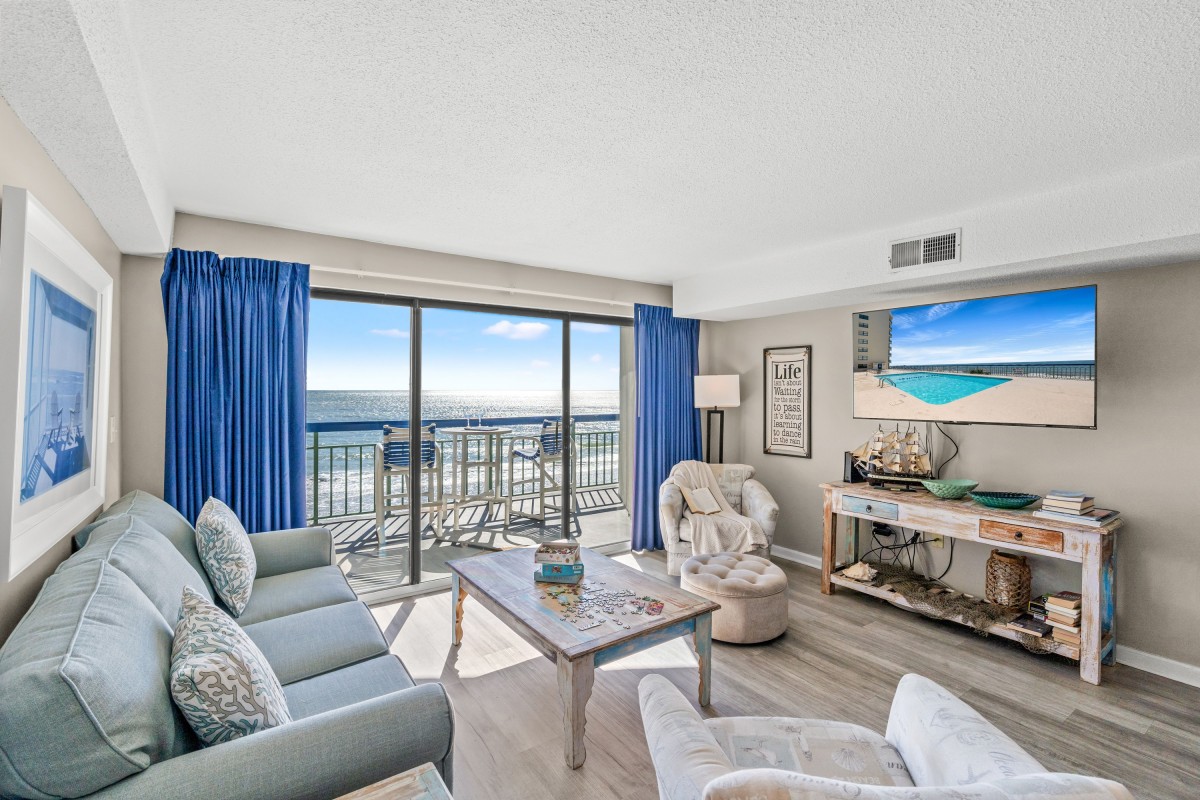 Oceans 405 is a two-bedroom condominium. With welcoming decor and an oceanfront view that seemingly goes on forever, Ocean 405 is brimming with delightful attributes. This two-bedroom, two-bath condominium has an oceanfront balcony.