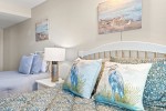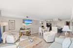 The fully equipped kitchen opens to the dining area and living room, and the breakfast bar is a wonderful place to serve snacks to the kids when you are on vacation. The soothing color scheme of this oceanfront condominium is phenomenal, and its close proximity to the swimming pool deck and beach access is fantastic.