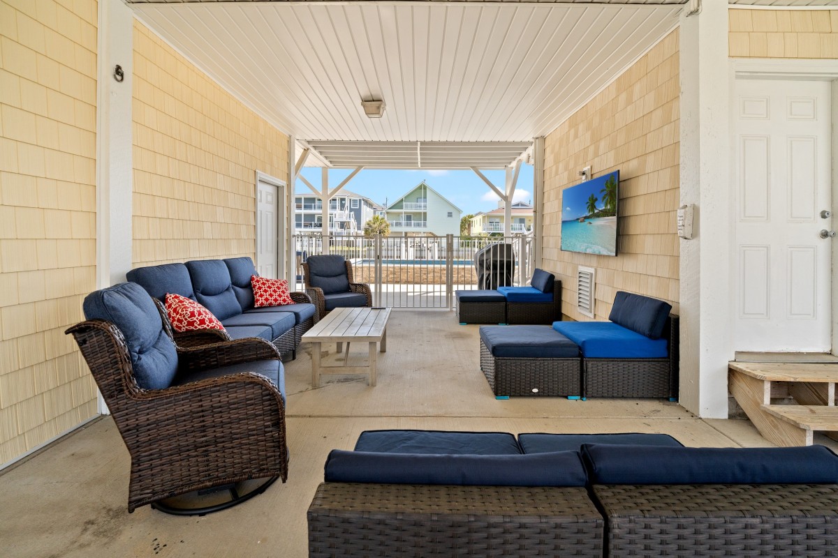 Luxurious details set this rental apart, such as tiled bathrooms, granite kitchen countertops, and stainless appliances. There are two master bedrooms with balcony access, and one of them is a master suite. The master suite connects to the deck. Enjoy the view of the channel and observe wildlife such as egrets, fiddler crabs, fish, and turtles. More convenient amenities include an in-unit washer and dryer, flatscreen TVs, and complimentary WIFI. You can stay entertained and connected, and don’t forget to bring your tablets and laptops. Everyone can indulge in their favorite games and TV shows and not even have to share screen time.