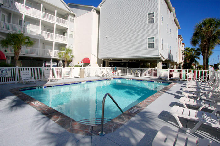 Close to the northernmost end of the Cherry Grove section of town, this Myrtle Beach resort boasts a dock that overlooks the salt water channel. There are peaceful surroundings and the hustle and bustle of the oceanfront is steps away from your Myrtle Beach vacation rental at Ocean Pointe. A sparkling blue swimming pool welcomes your family for a refreshing dip and each of the condominiums at Ocean Pointe has a private balcony with water views.